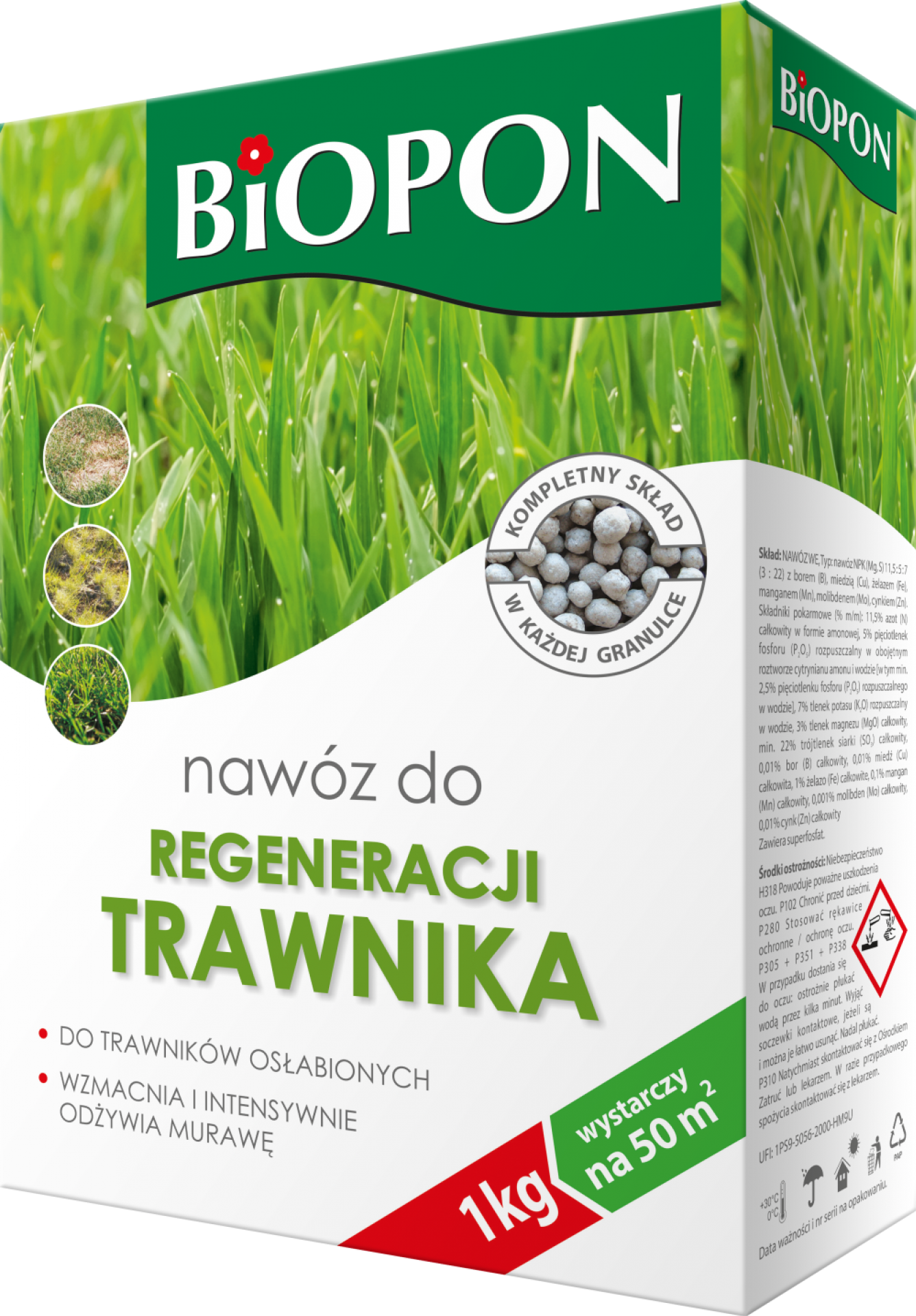Niezbędny, gdy wygląd trawnika wskazuje na jego osłabienie i wymaga pilnej interwencji. Zwiększona ilość azotu pobudza do wzrostu, co w połączeniu z odpowiednią częstotliwością koszenia wzmocni efekt odnawiania się murawy. Szybko i skutecznie poprawimy w ten sposób wygląd każdego trawnika.